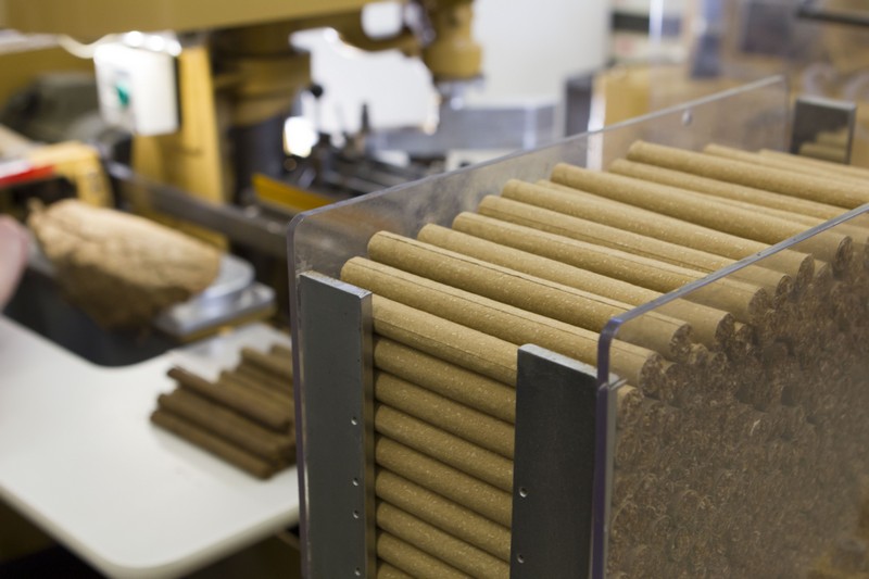 Při další výrobní operaci následuje obalení krycím listem z přírodního tabáku, jenž je spirálově ovinut kolem celé délky doutníku pomocí strojů od holandského výrobce SCM B.V. Kampen.